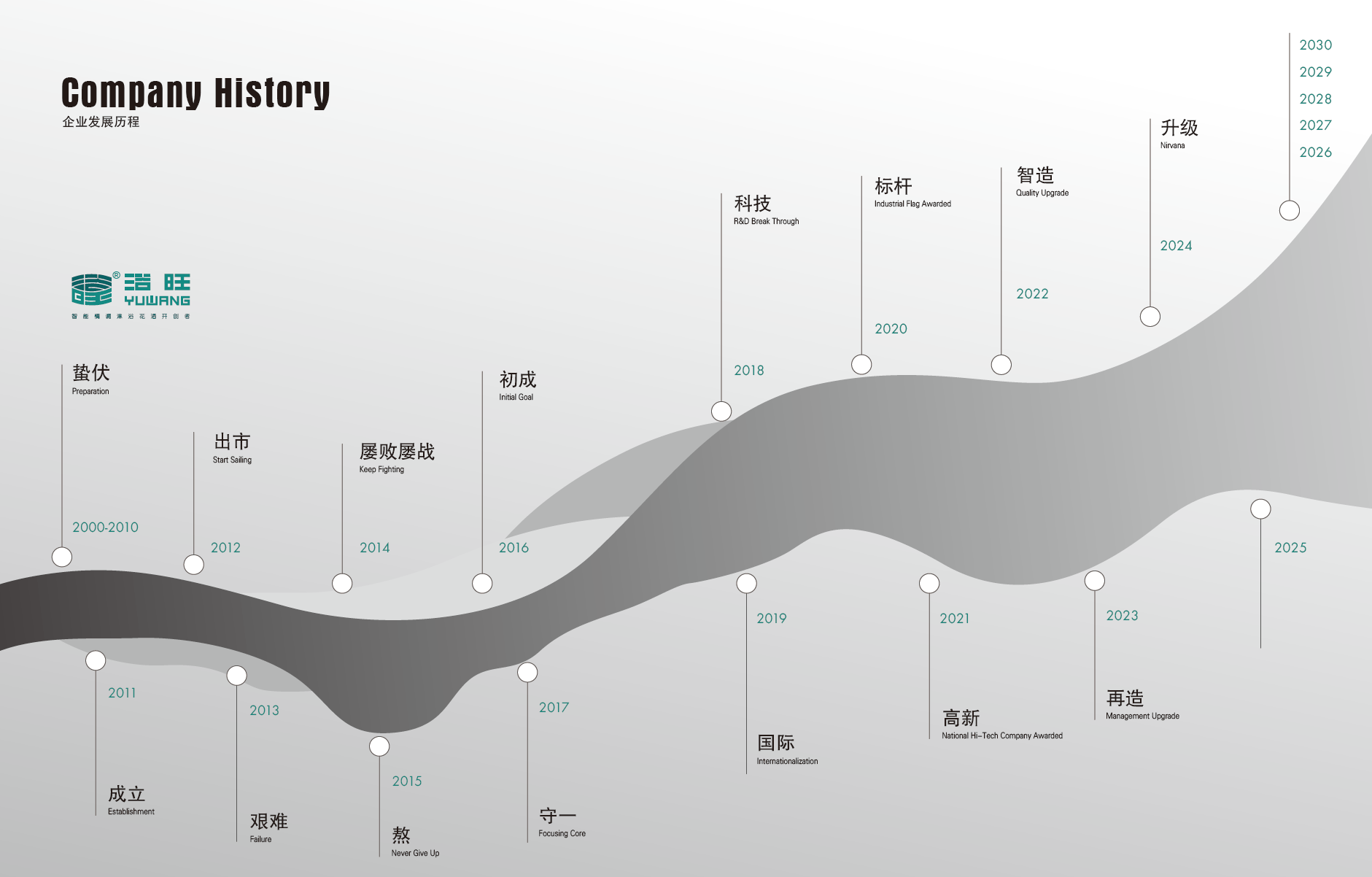 Since earlier of 2010, Yuwang has been engaged in the design, research, developing, manufacturing and sales of Smart Emotional shower products, and occupies the leading position in the industry sub-category of intelligent concealed installation shower system. Till now we have developed a large products range and provide more options to the customers allover the world.